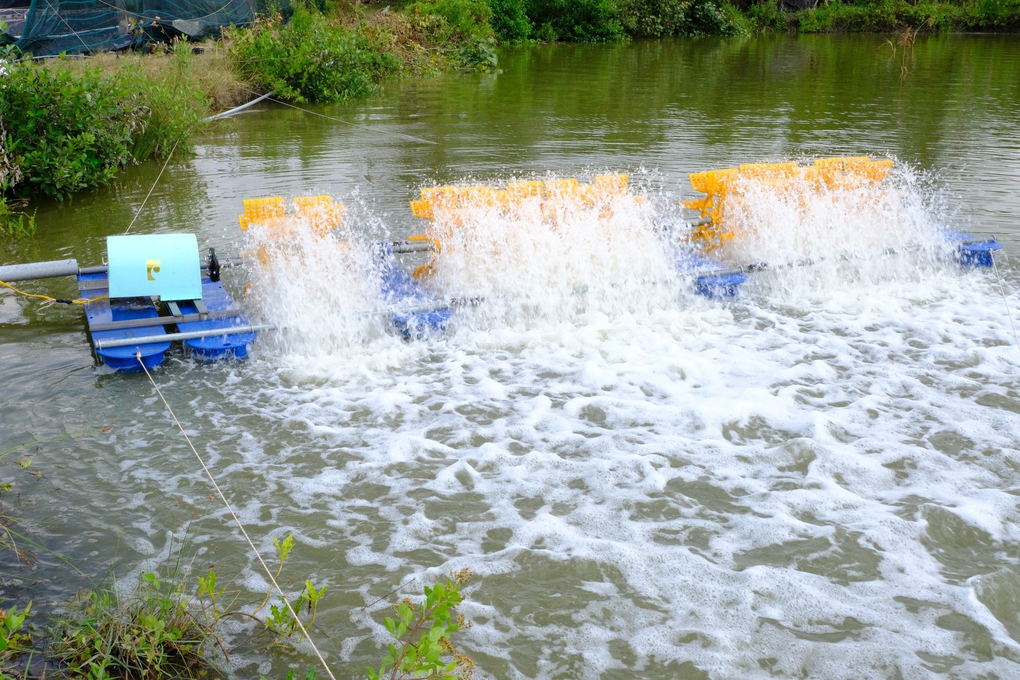 - Giúp phân bố đều thuốc, chế phẩm hóa chất… trong nước ao.